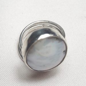Ανοιχτό δαχτυλίδι με μαργαριτάρι “νόμισμα”.