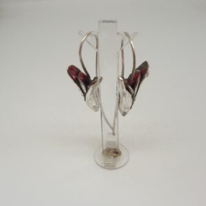 Naturalistic earring, with red warm enamel. Length 3.5 cm,